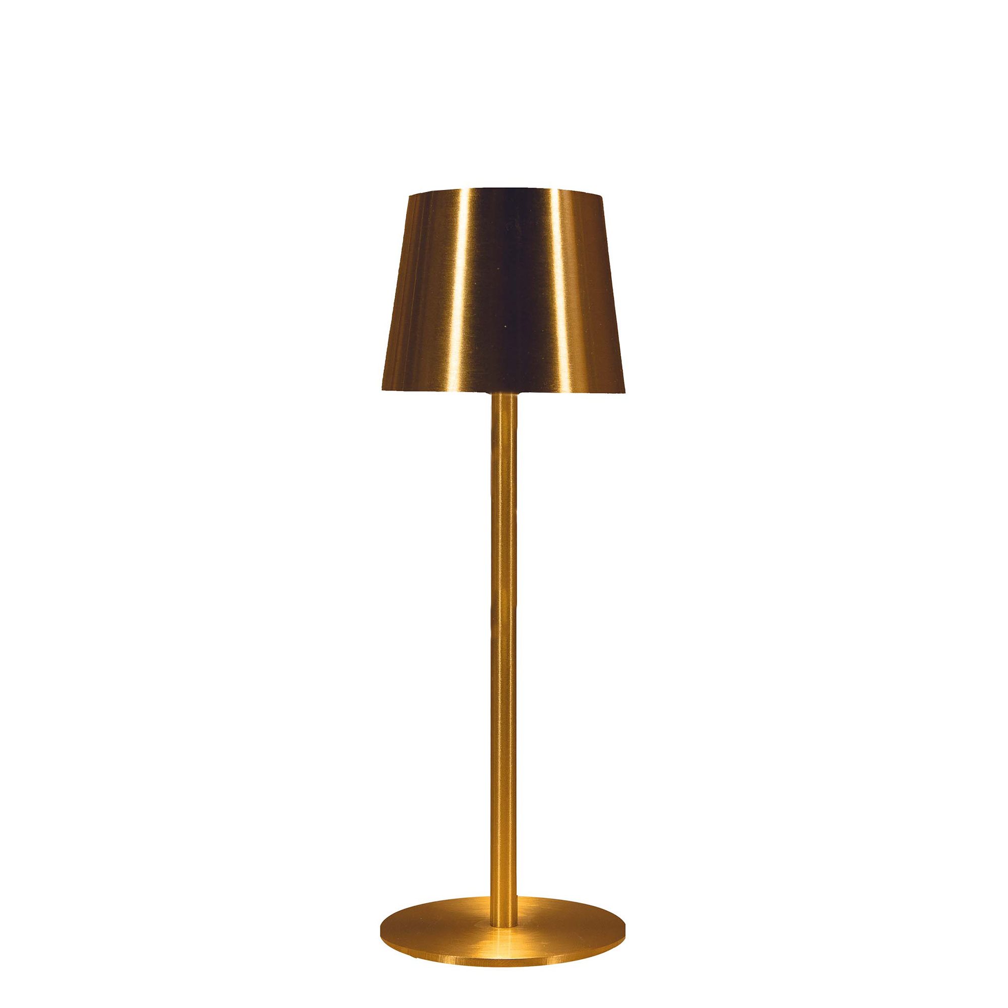 Genopladelig bordlampe med kelvin-skift, trinløst dæmpning, 27,5 cm høj, i Guld / Messing farve - IP44