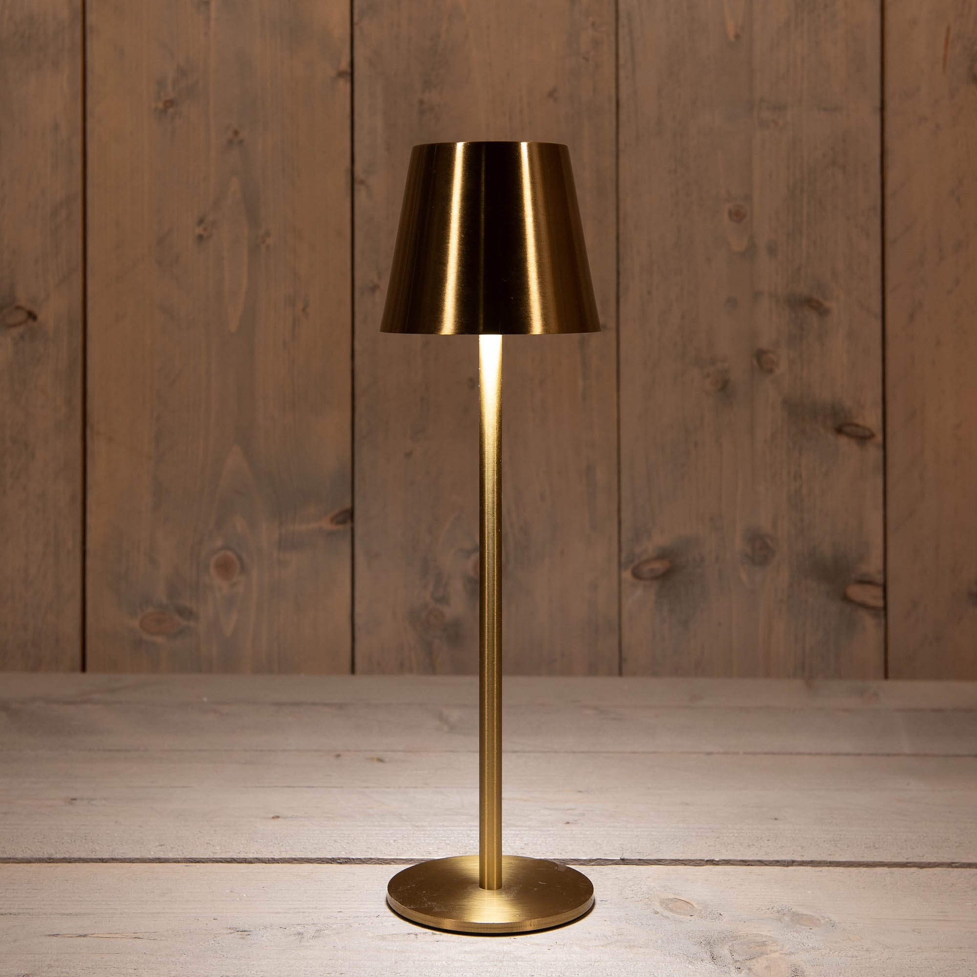 Genopladelig bordlampe med kelvin-skift, trinløst dæmpning, 36,5 cm høj, i Guld / Messing farve - IP44